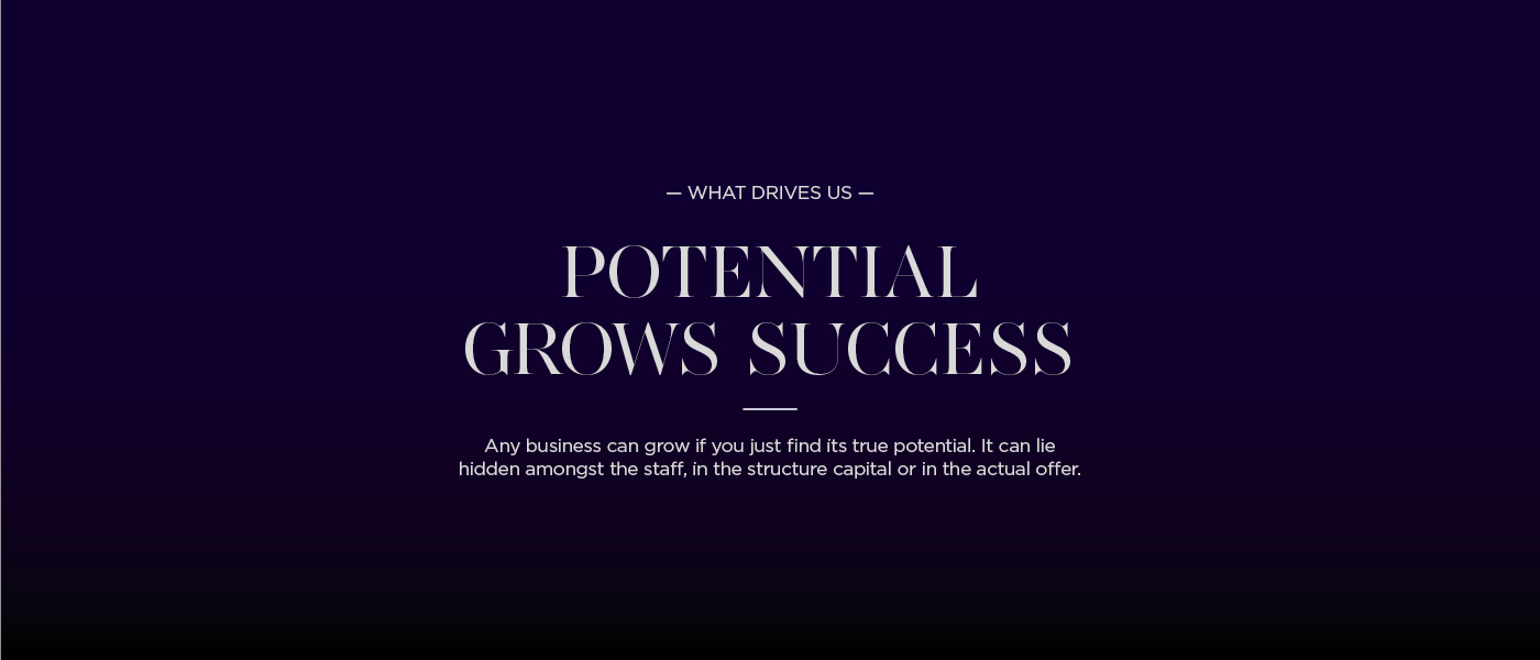 ”Potential Grows Success. Any business can grow if you just find its true potential. It can lie hidden amongst the staff, in the structure capital or in the actual offer. Our job is to come with an outside perspective and… ...