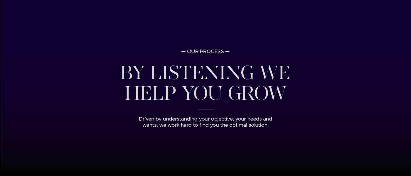 Driven by understanding your objective, your needs and wants, we work hard to find you the optimal solution. To accomplish this we aim to have a close and honest partnership. The only way to succeed is to be honest about…